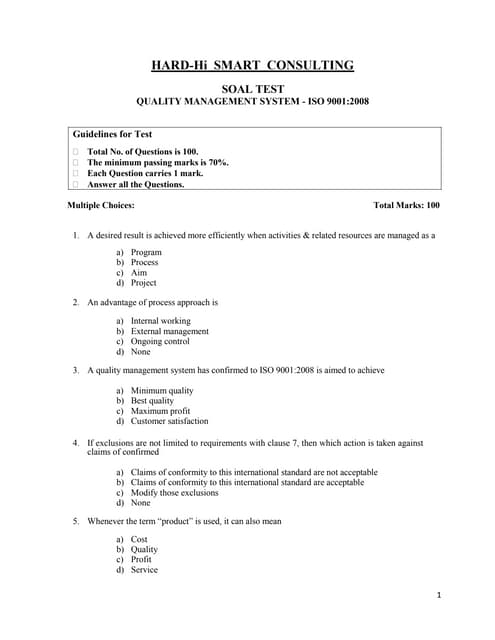Pelatihan lead auditor iso 9001:2015 ini bertujuan agar peserta. Smm menggalakan sebuah organisasi untuk : Apa tujuan dari sebuah sistem manajemen mutu? Kum.soal ujian sertifikasi profesi certified forensic auditor (cfra). Yang dimaksud mutu dalam iso 9001:2015, adalah :